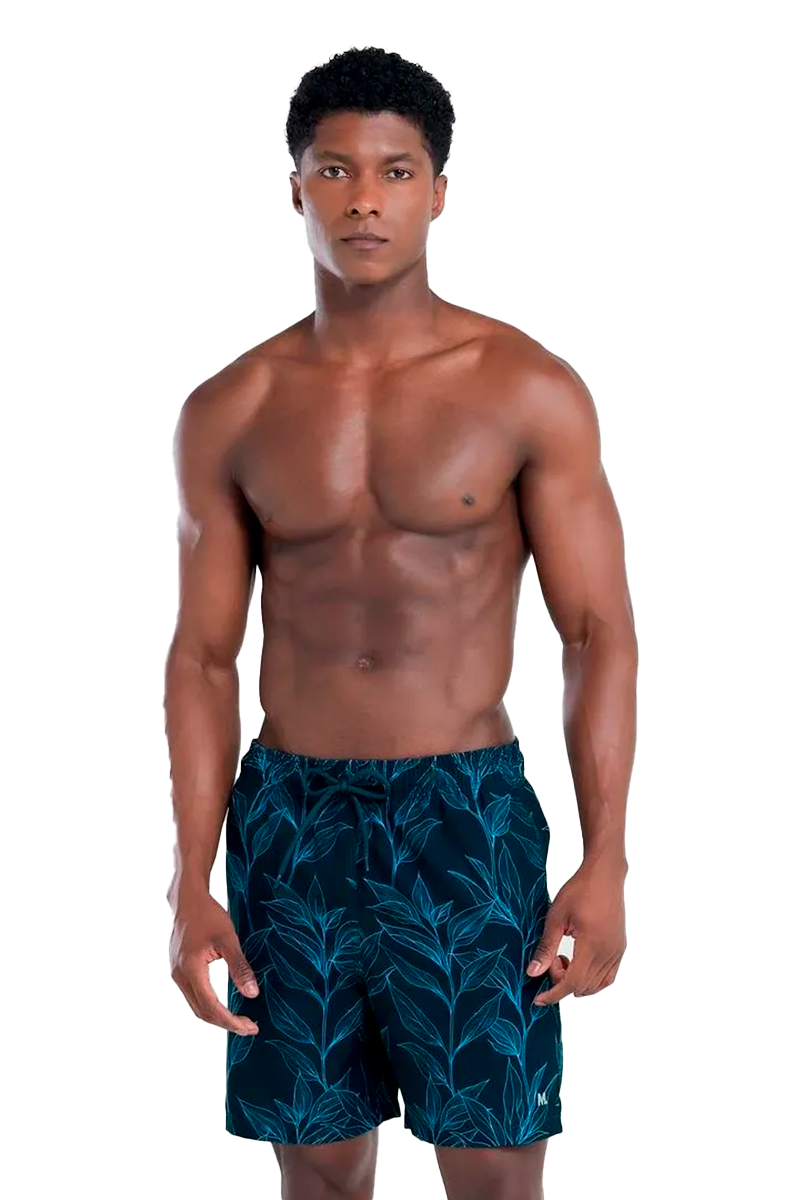 Shorts Mash Elastano com Estampa de Folhagem Preto