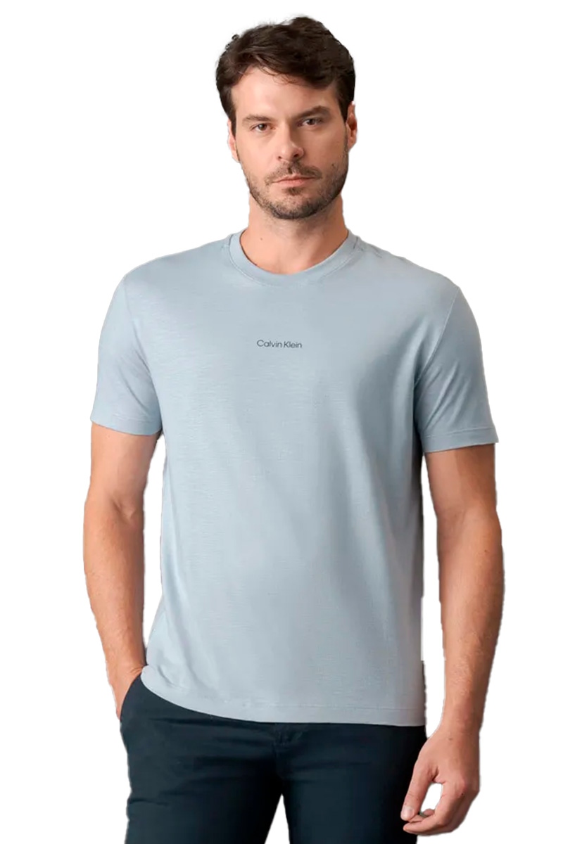 Camiseta Calvin Klein Flamê Institucional Masculina Azul Claro
