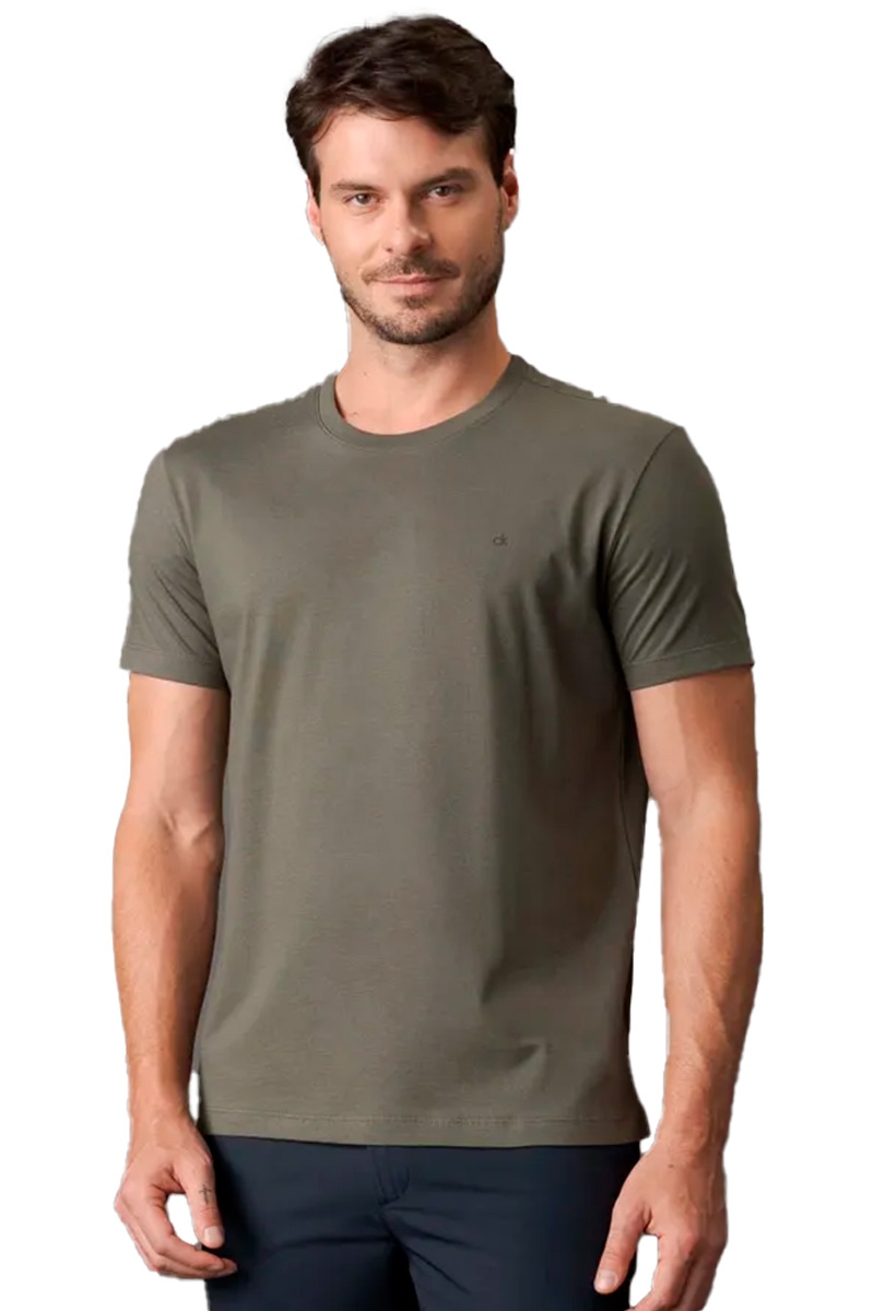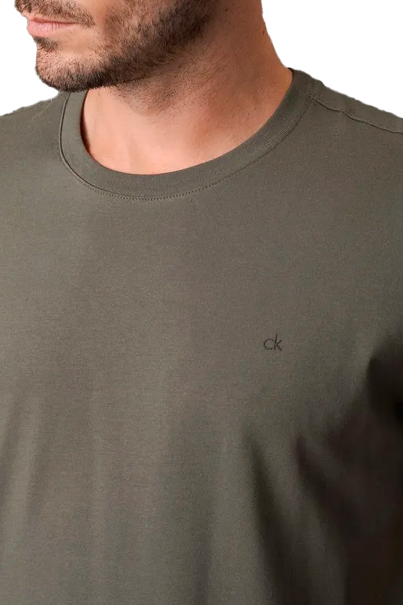 Camiseta Calvin Klein Meia Malha Masculina Verde Militar