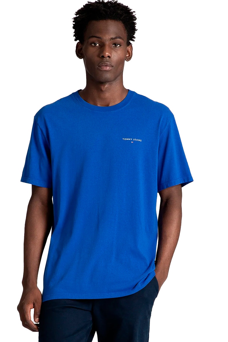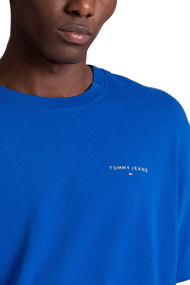 Camiseta Tommy Jeans AB Slim Linear Chest Tee Masculina Azul Bic