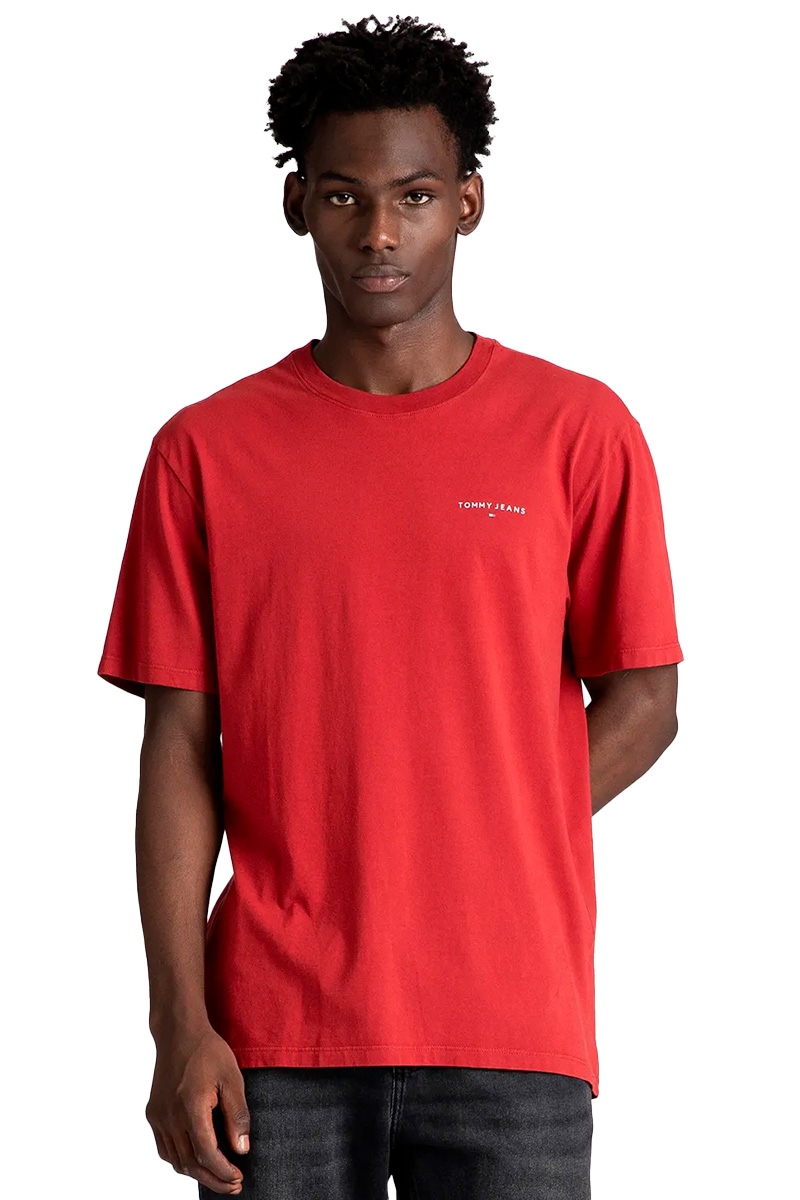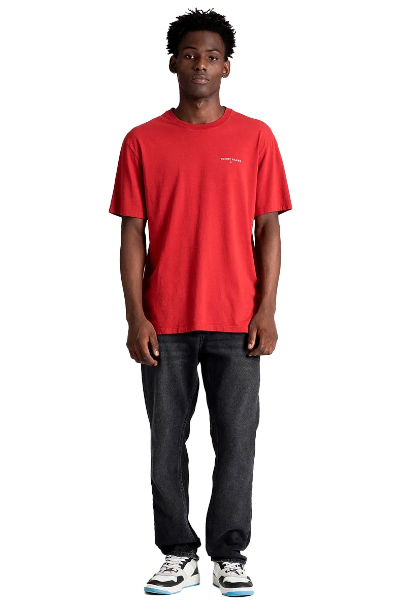 Camiseta Tommy Jeans AB Slim Linear Chest Tee Masculina Vermelho