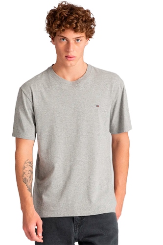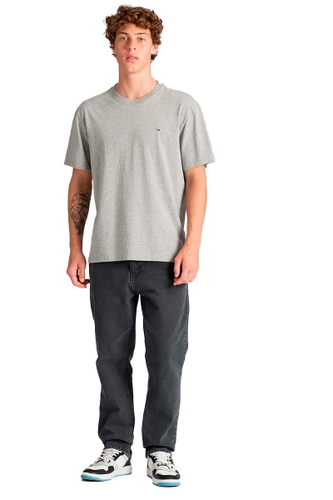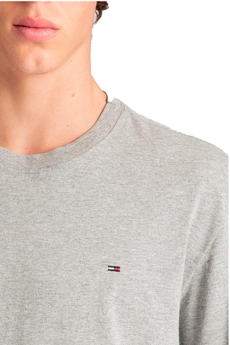 Camisetas Tommy Jeans Regular C-Neck Flag Masculina Cinza Mescla