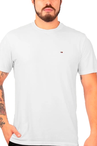 Camisetas Tommy Jeans Regular C-Neck Flag Masculina Branco