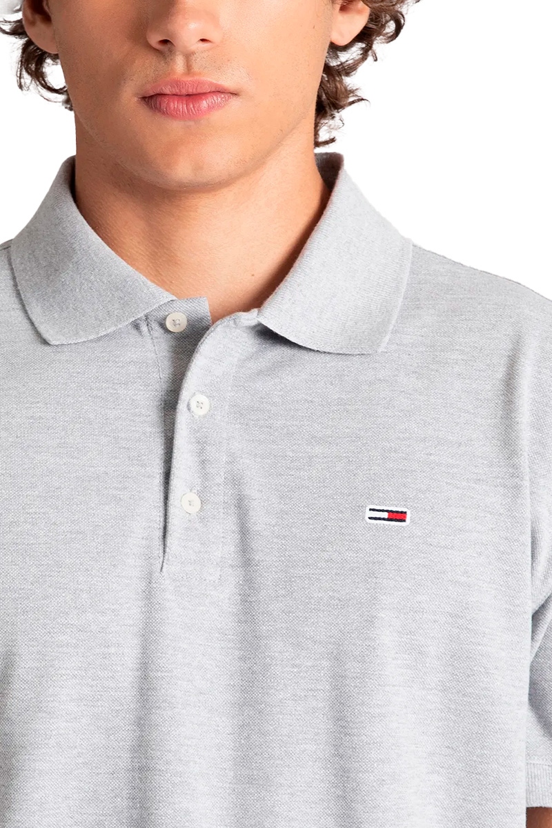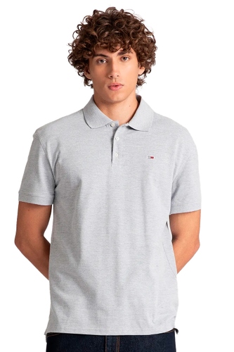 Polo Tommy Jeans Original Fine Piquet Masculina Cinza Mescla