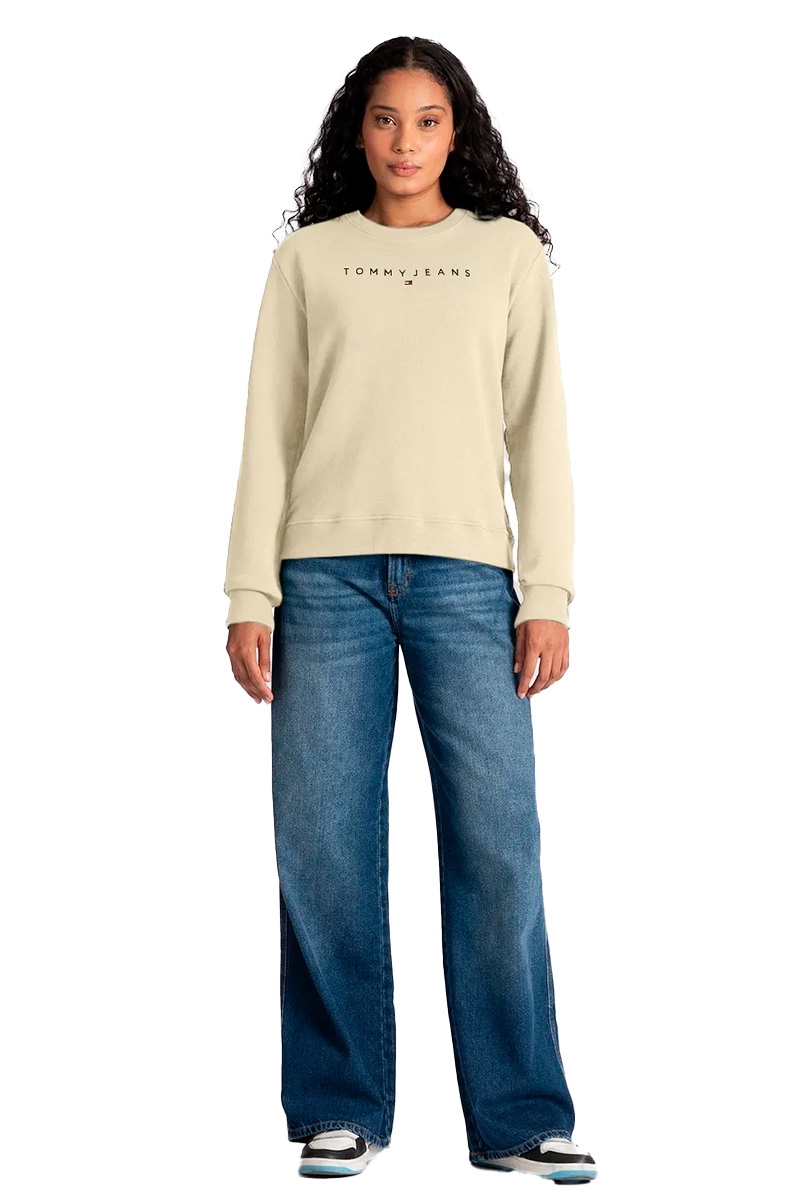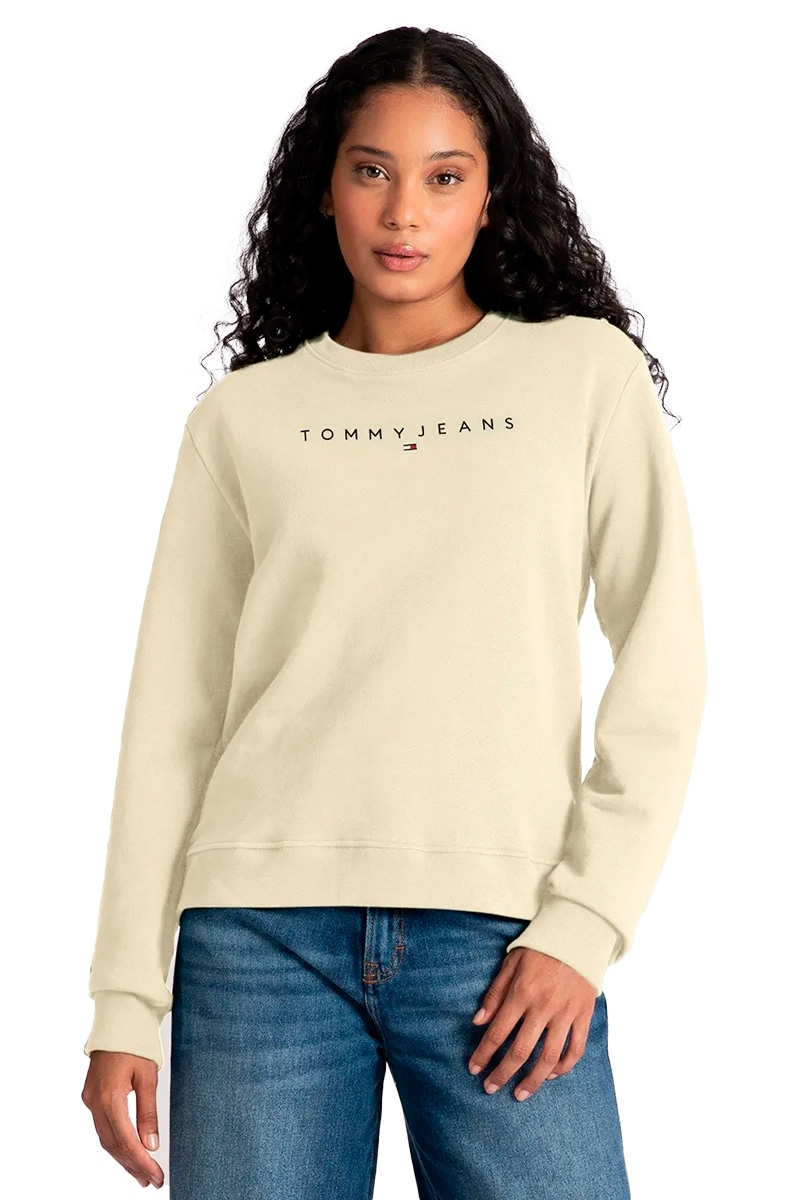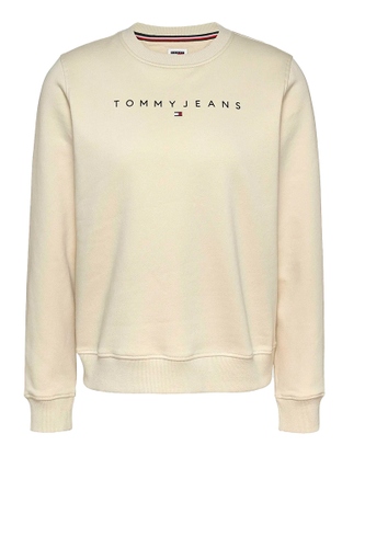 Moletom Tommy Jeans Logo Linear Crew Ext Feminino Bege