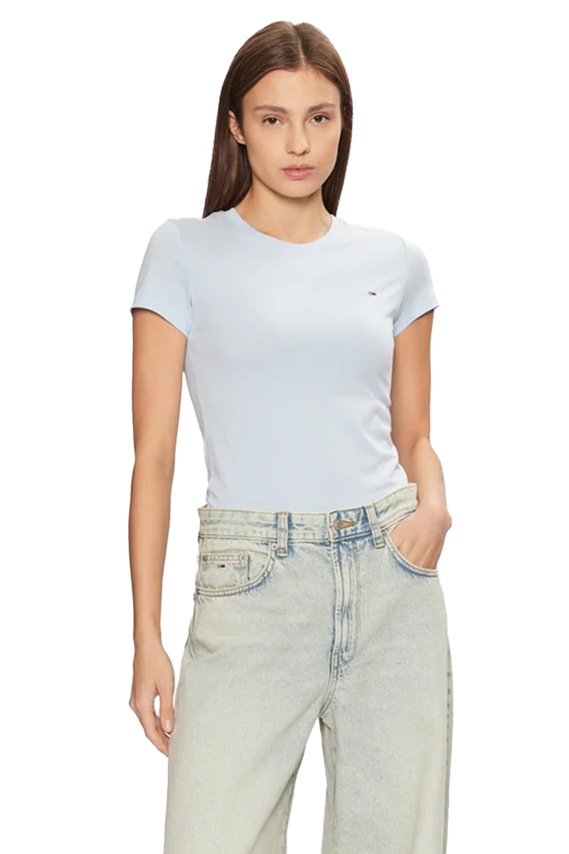 Camiseta Tommy Jeans Neck Tee Feminina Azul Claro