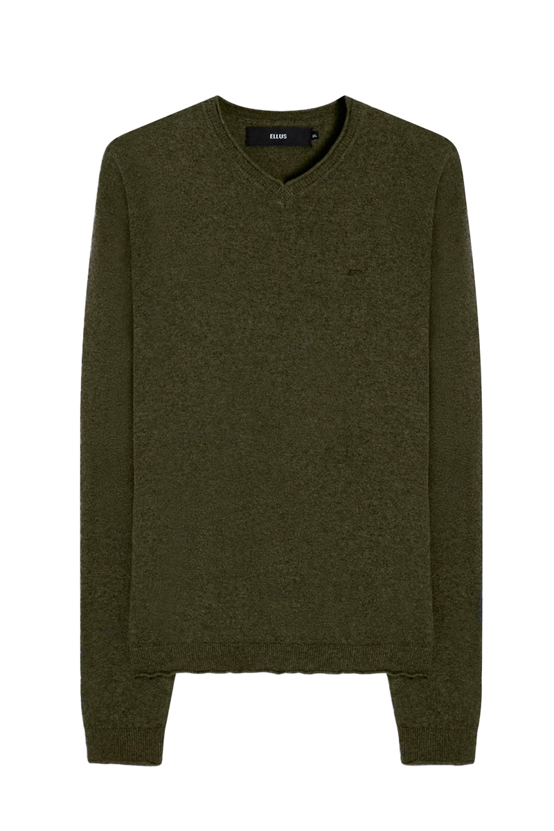 Suéter Ellus Tricot Basic Neck Classic V Masculino Verde Militar