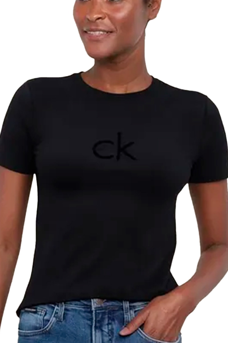 Camiseta Calvin Klein Logo Flocado Feminina Preto